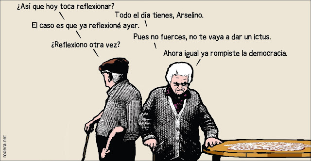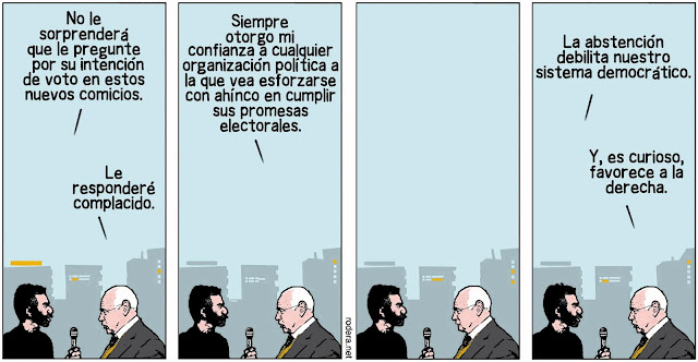 | Jueves 7 de noviembre 2019 El voto envejecido favorece a la derecha, la abstención favorece a la derecha, la derecha siempre vota. La derecha siempre vota a los mismos. La derecha es muy, muy pesada. |